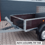 ALFA 11511MN.75F FAB egytengelyes 1,45×1,08m méretű, 750kg fék nélküli mellsőkerekes fix oldalfalas felhajtó ajtós dönthető utánfutó