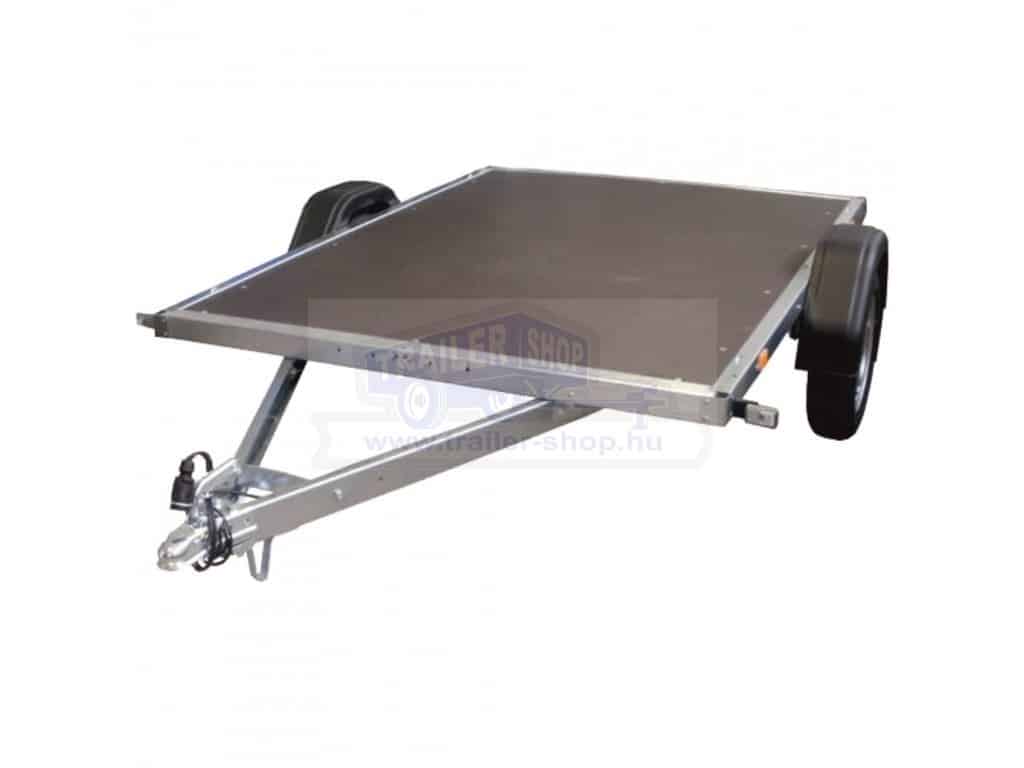 A síkplatós utánfutó ideális választás minden olyan feladathoz, ahol a rakomány mérete, alakja vagy hossza miatt zárt oldalfal nélküli szállítás szükséges. Nyitott kialakítása maximális rakodási szabadságot kínál – egyszerűen és gyorsan elhelyezhető rajta építőanyag, gép, raklapos áru vagy akár hosszú fém- és faelemek is. Erős, horganyzott acélszerkezete ellenáll az időjárásnak és a mechanikai igénybevételnek, így kültéri használatra is kiváló. A csúszásmentes padló biztos tapadást nyújt, míg a megerősített alváz gondoskodik a teherbírásról és stabilitásról. A síkplatós kivitel különösen népszerű a kivitelezők, kertépítők, gazdálkodók és magánszemélyek körében, akik megbízható, könnyen kezelhető és sokoldalúan használható utánfutót keresnek a mindennapi szállítási feladatokra.