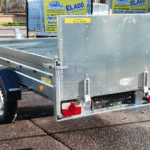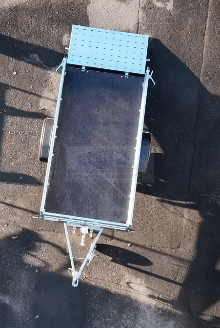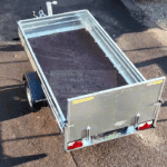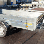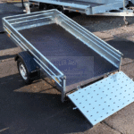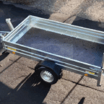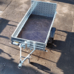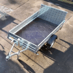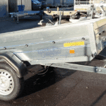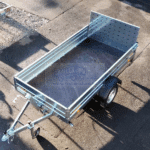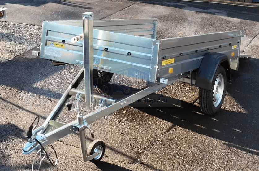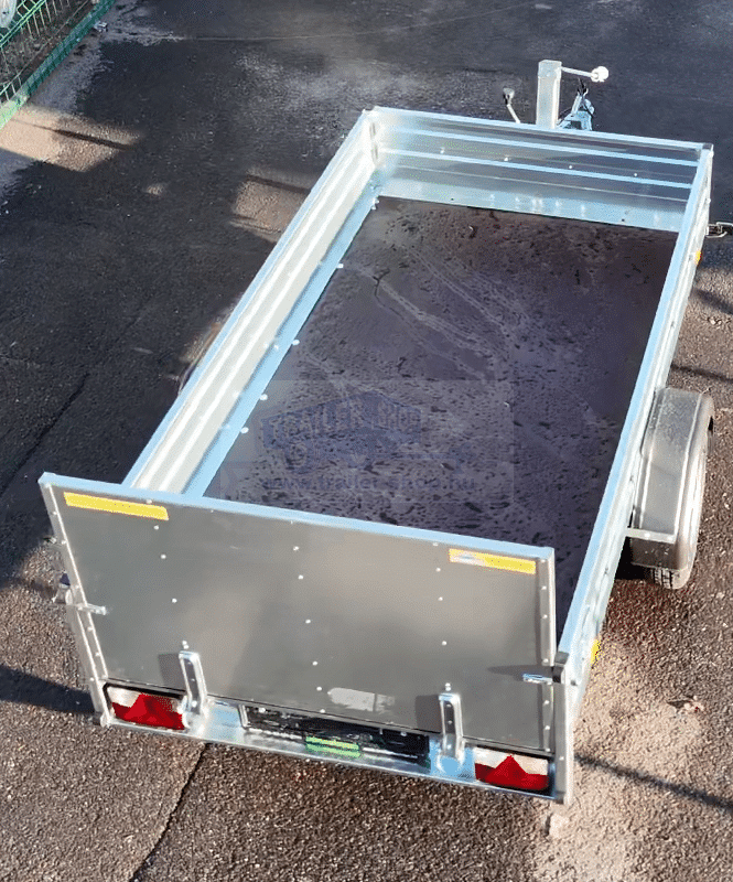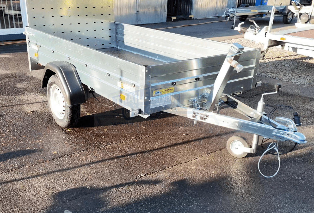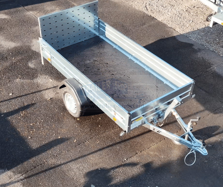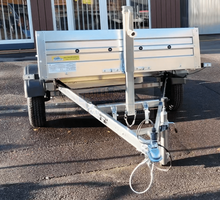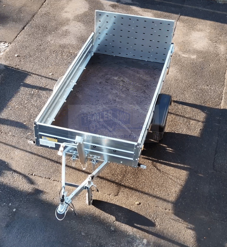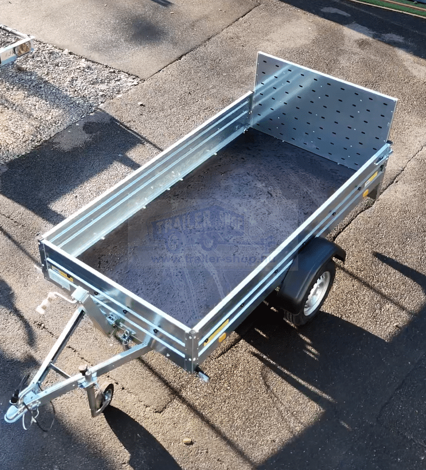 Az utánfutó alvázát megbízható Knott gyártmányú torziós tengely alkotja. A kerékméret 155/70 R13, amely megfelelő stabilitást és terhelhetőséget biztosít. A szállítófelület erős, vízálló és csúszásmentes rétegelt falemez, integrált rögzítő elemekkel így a rakomány mindig biztonságban van. A V-típusú vonórúd biztos vontatási stabilitást nyújt menet közben. Az oldalfalak teljes egészében horganyzott acélból készülnek, bordázott kialakításuknak köszönhetően merev fallal ellenáll a a deformálódásnak. Nyitható hátsó oldala van, ami pár perc alatt lehetővé teszi a be- és kirakodást! Az oldalfalak magassága 35 cm, de kérhető akár 70 cm teljes magasságban is.