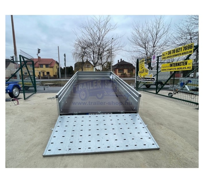 Oldalfalas utánfutónk tűzihorganyzott acélból készül, amely maximális védelmet nyújt a rozsdával és az időjárás viszontagságaival szemben. A padlózat vastag vízálló, csúszásmentes rétegelt lemez, így a rakomány mindig biztonságosan marad a helyén. Az erős tartókeret és a precízen illesztett oldalfalak garantálják a stabilitást. A hátsó fal lehajtható, így a be- és kirakodás gyors és kényelmes. Lehetőség van hosszú rakományok – például faanyag vagy csövek – szállítására is, a hátsó oldalfalak eltávolításával. A konstrukció úgy lett kialakítva, hogy a hétköznapi és ipari használatot is jól bírja. A kiváló anyaghasználatnak köszönhetően hosszú évekig problémamentesen használható. A konstrukció ellenáll az úthibáknak, rázkódásoknak és a gyakori használatnak is. A További információk panelen az utánfutó konkrét műszaki méreteiről kap tájékoztatást.