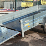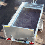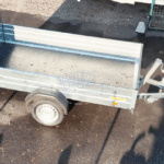 ALFA 13015MN.75 FAB egytengelyes 2,94×1,44m méretű, 750kg fék nélküli mellsőkerekes fix oldalfalas felhajtóajtós dönthető nyitott utánfutó