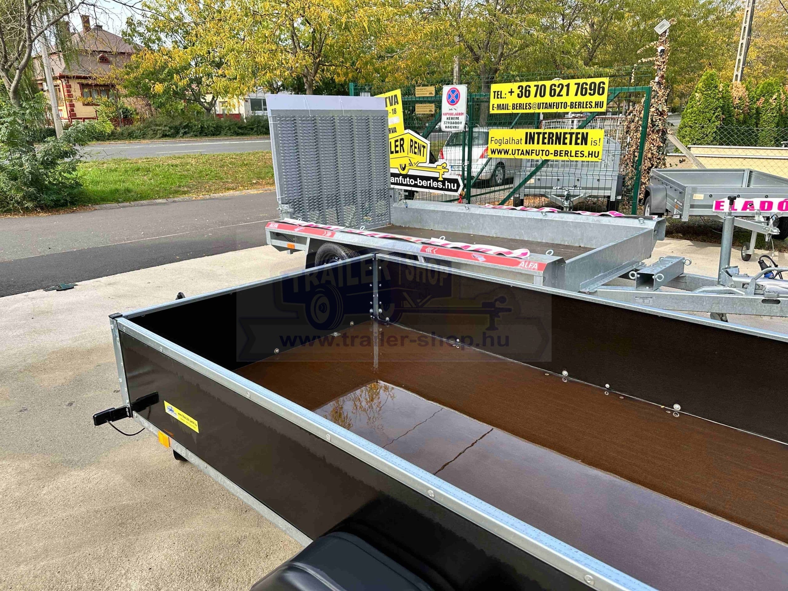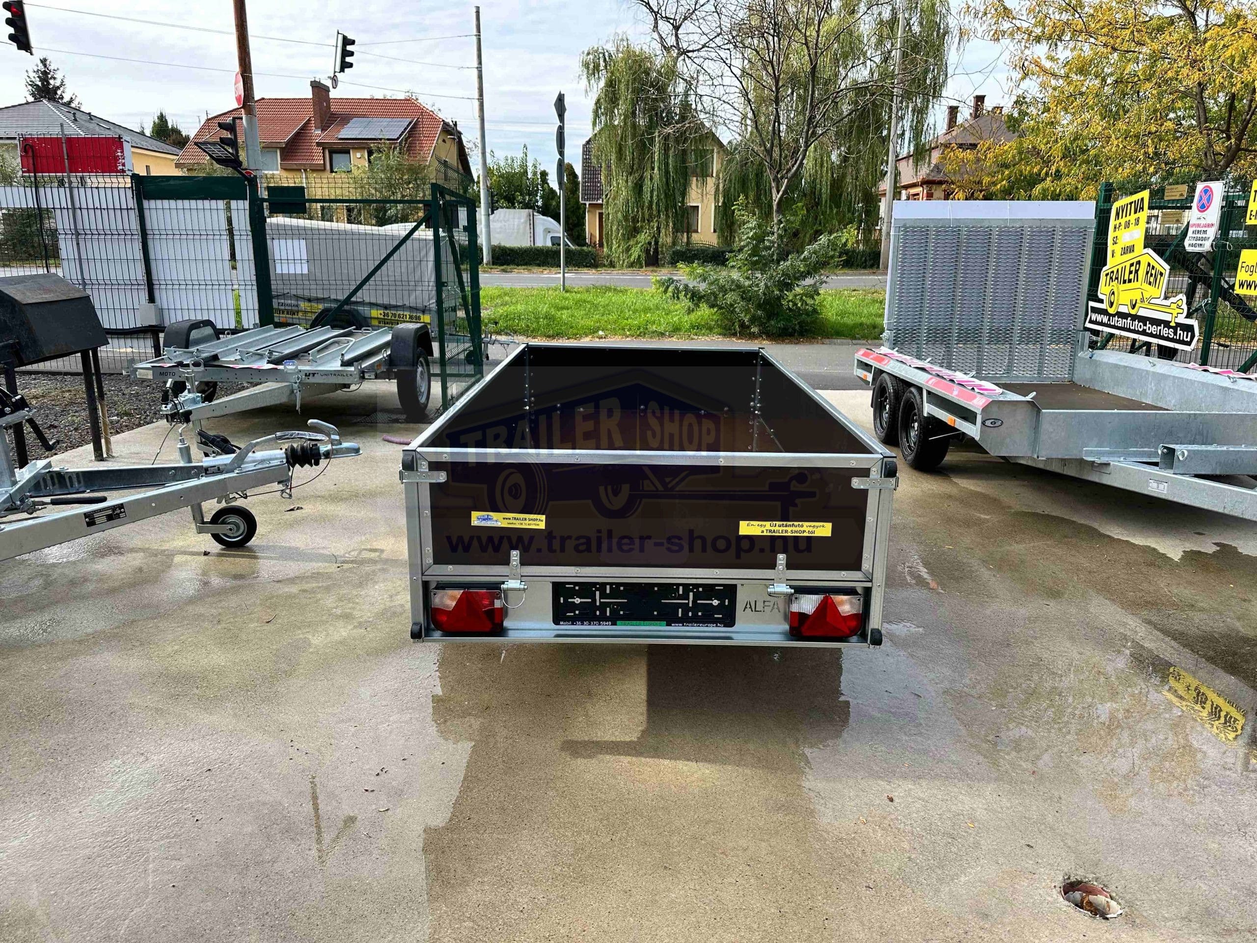 ALFA 13015MN.75F egytengelyes, 2,94×1,44m méretű, 750kg fékezetlen mellsőkerekes fix playwood oldalfalas nyitott utánfutó