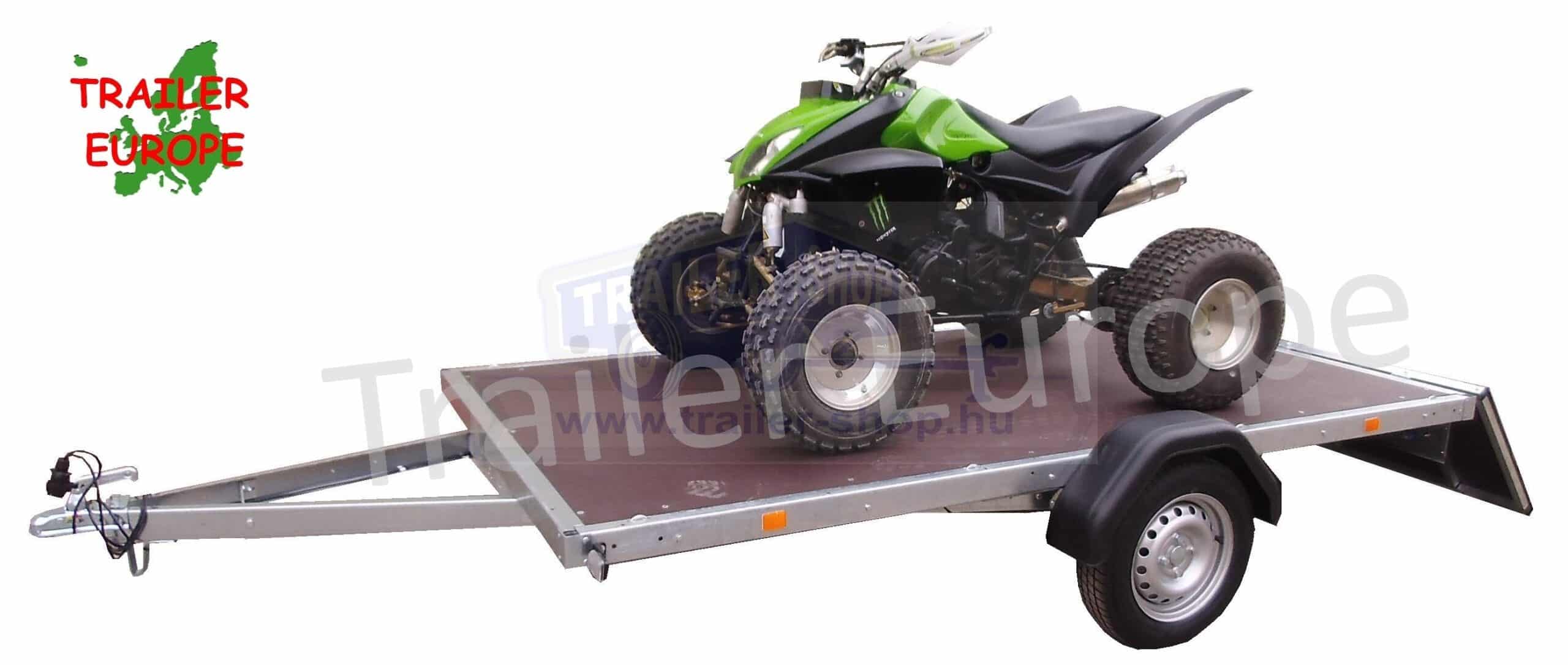 ALFA 13016MP.75 QB egytengelyes fék nélküli mellsőkerekes uniplatós síkplatós quadszállító utánfutó billenősMotor és quadszállító utánfutó – teljes körű ügyintézéssel és gyors szállítással. Az utánfutó EK-Megfelelőségi nyilatkozattal, Műszaki adatlappal, Műszaki vizsgálati bizonyítvánnyal, Járműkísérő lappal és részletes dokumentációval kerül átadásra.