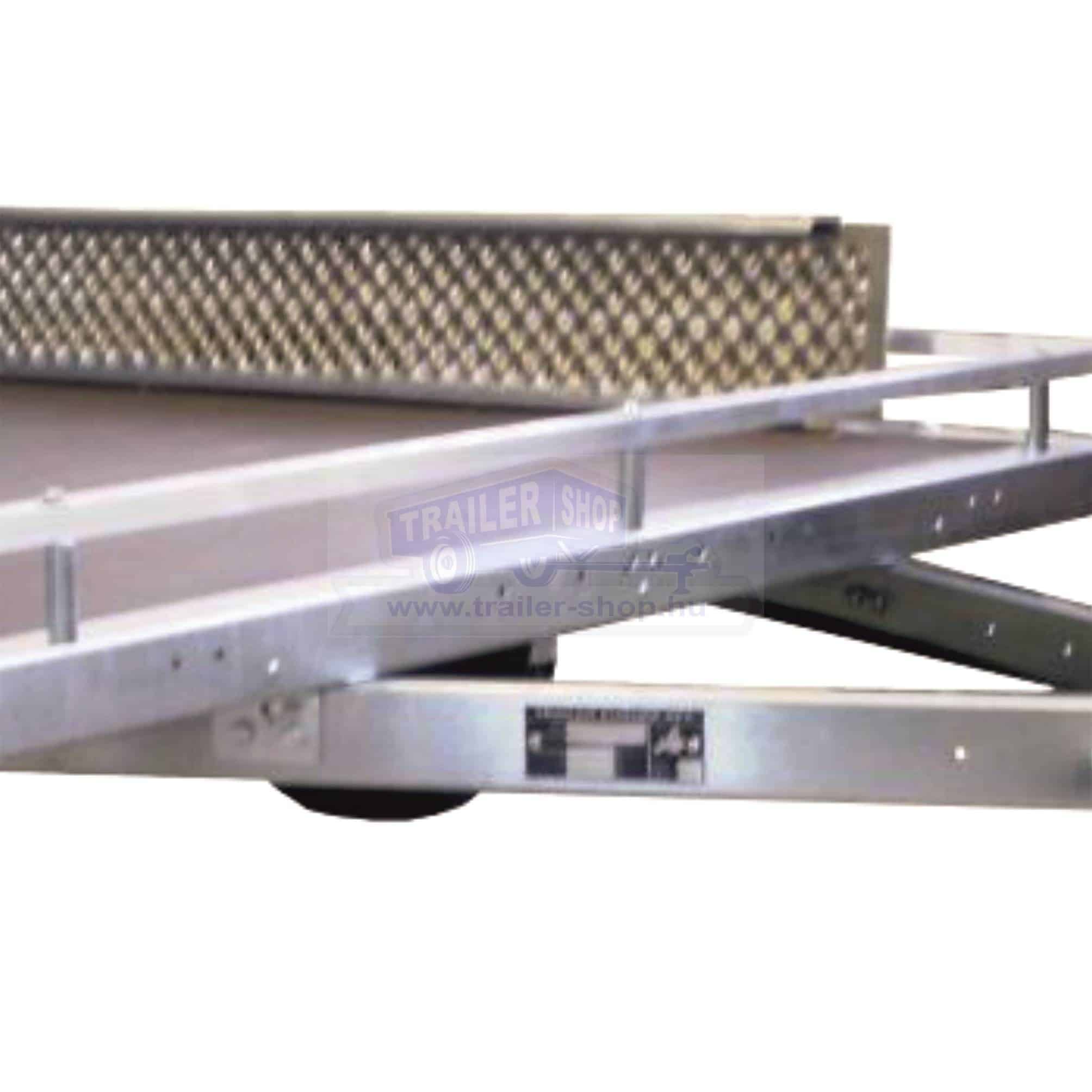 ALFA 13016MP.75 QB egytengelyes, 3,04×1,60m méretű, 750kg fék nélküli mellsőkerekes uniplatós síkplatós quadszállító utánfutó billenős