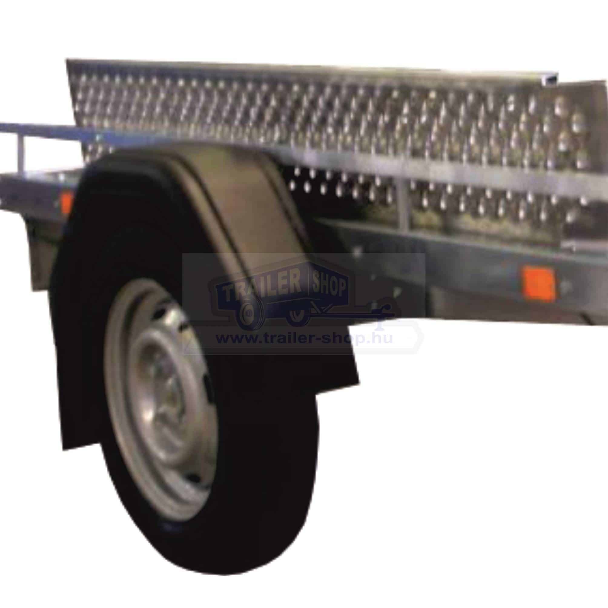 Quad- és motoszállító utánfutóink tűzihorganyzott acélból készül, amely maximális védelmet nyújt a rozsdával és az időjárás viszontagságaival szemben. A padlózat vastag vízálló, csúszásmentes rétegelt lemez, így a rakomány mindig biztonságosan marad a helyén. Masszív, mégis könnyű szerkezete garantálja a stabilitást és megbízhatóságot akár hosszabb utak során is. A praktikus rámpa és az alacsony rakodómagasság lehetővé teszi a gyors és biztonságos felhajtást, míg a rögzítőpontok segítségével a járművek szállítás közben fixen rögzíthetők. A További információk panelen az oldalfalas kivitelű utánfutó konkrét műszaki méreteiről kap tájékoztatást.