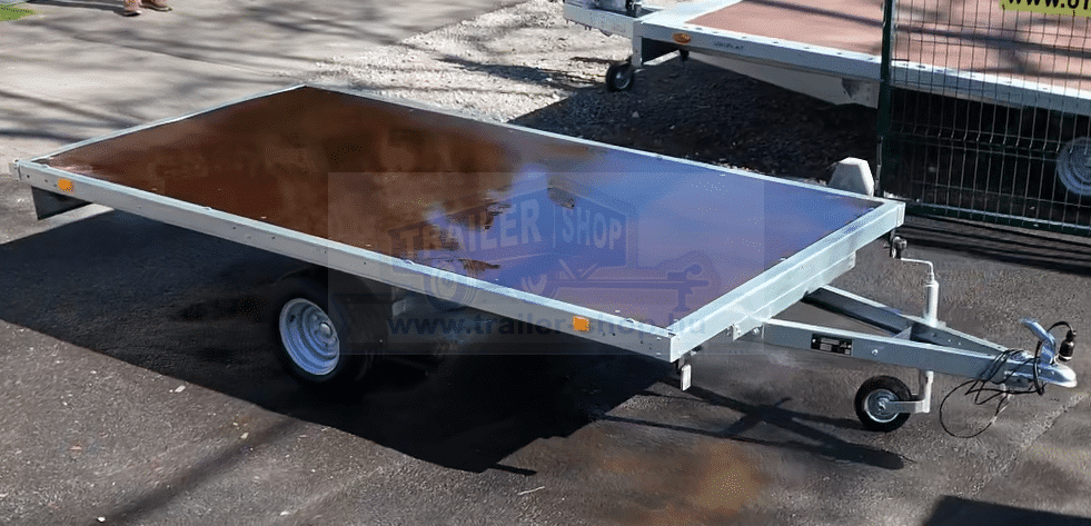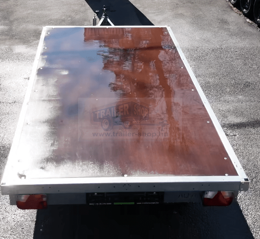 ALFA 13616AP.75 13″, 3,66×1,60m méretű, 750kg egytengelyes fék nélküli alsókerekes uniplatós síkplatós utánfutó