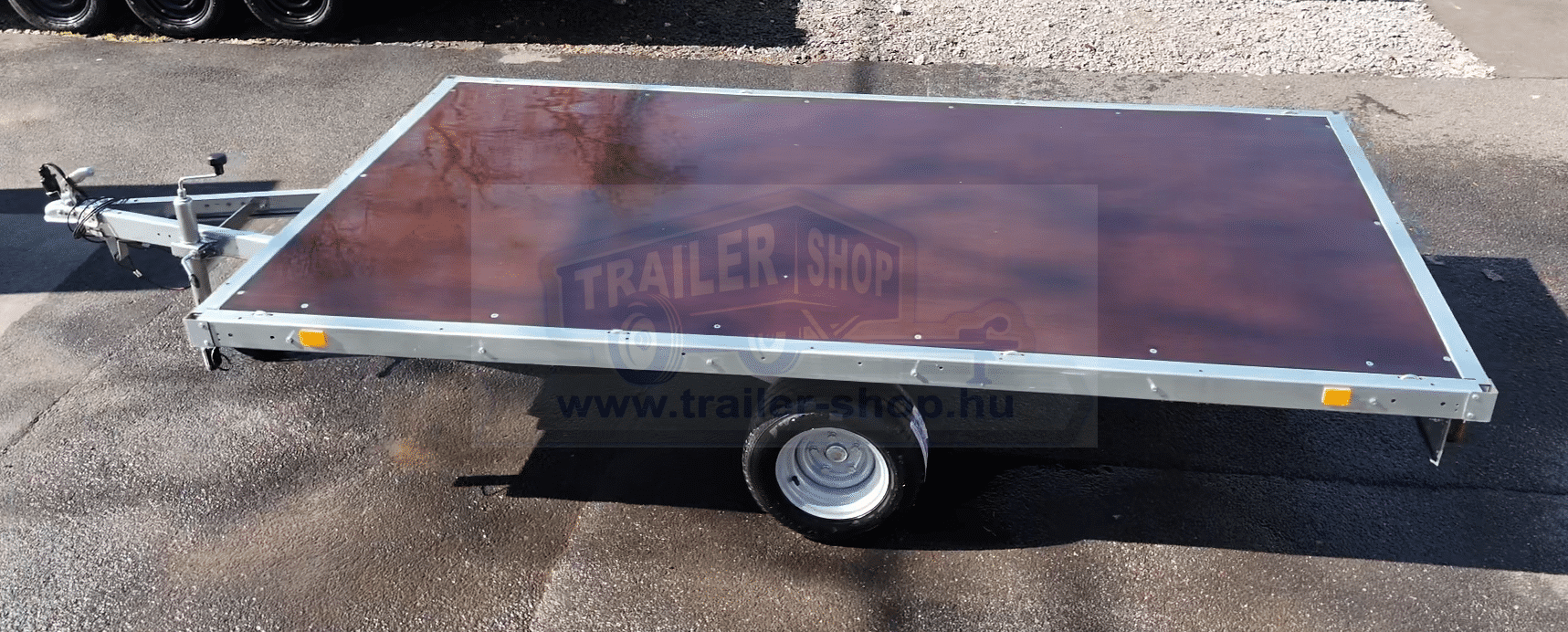 A síkplatós utánfutó ideális választás minden olyan feladathoz, ahol a rakomány mérete, alakja vagy hossza miatt zárt oldalfal nélküli szállítás szükséges. Nyitott kialakítása maximális rakodási szabadságot kínál – egyszerűen és gyorsan elhelyezhető rajta építőanyag, gép, raklapos áru vagy akár hosszú fém- és faelemek is. Erős, horganyzott acélszerkezete ellenáll az időjárásnak és a mechanikai igénybevételnek, így kültéri használatra is kiváló. A csúszásmentes padló biztos tapadást nyújt, míg a megerősített alváz gondoskodik a teherbírásról és stabilitásról. A síkplatós kivitel különösen népszerű a kivitelezők, kertépítők, gazdálkodók és magánszemélyek körében, akik megbízható, könnyen kezelhető és sokoldalúan használható utánfutót keresnek a mindennapi szállítási feladatokra.