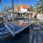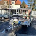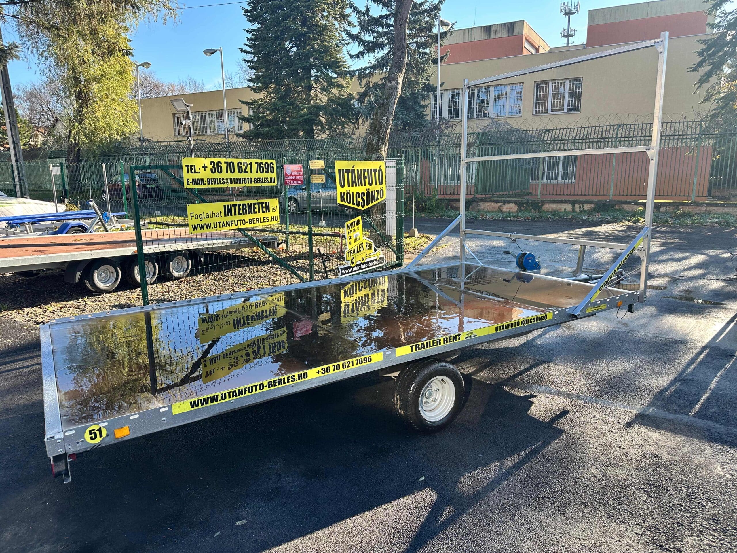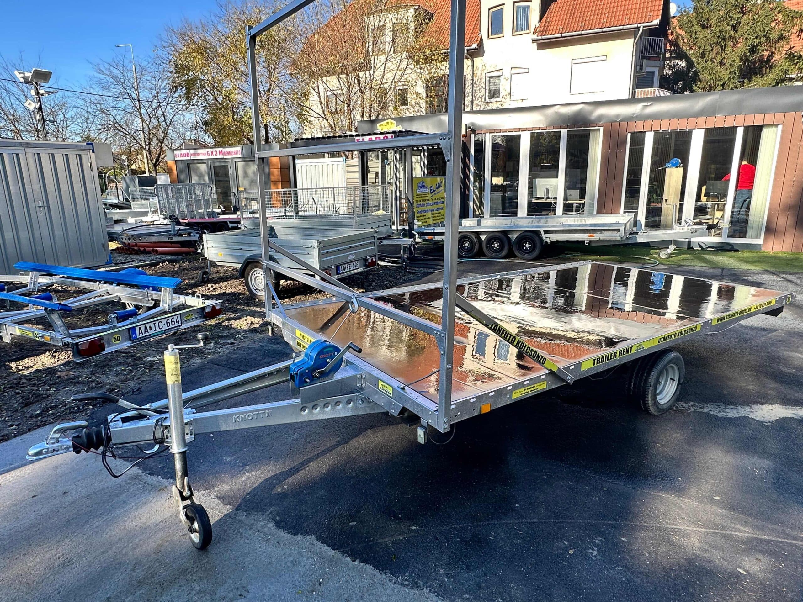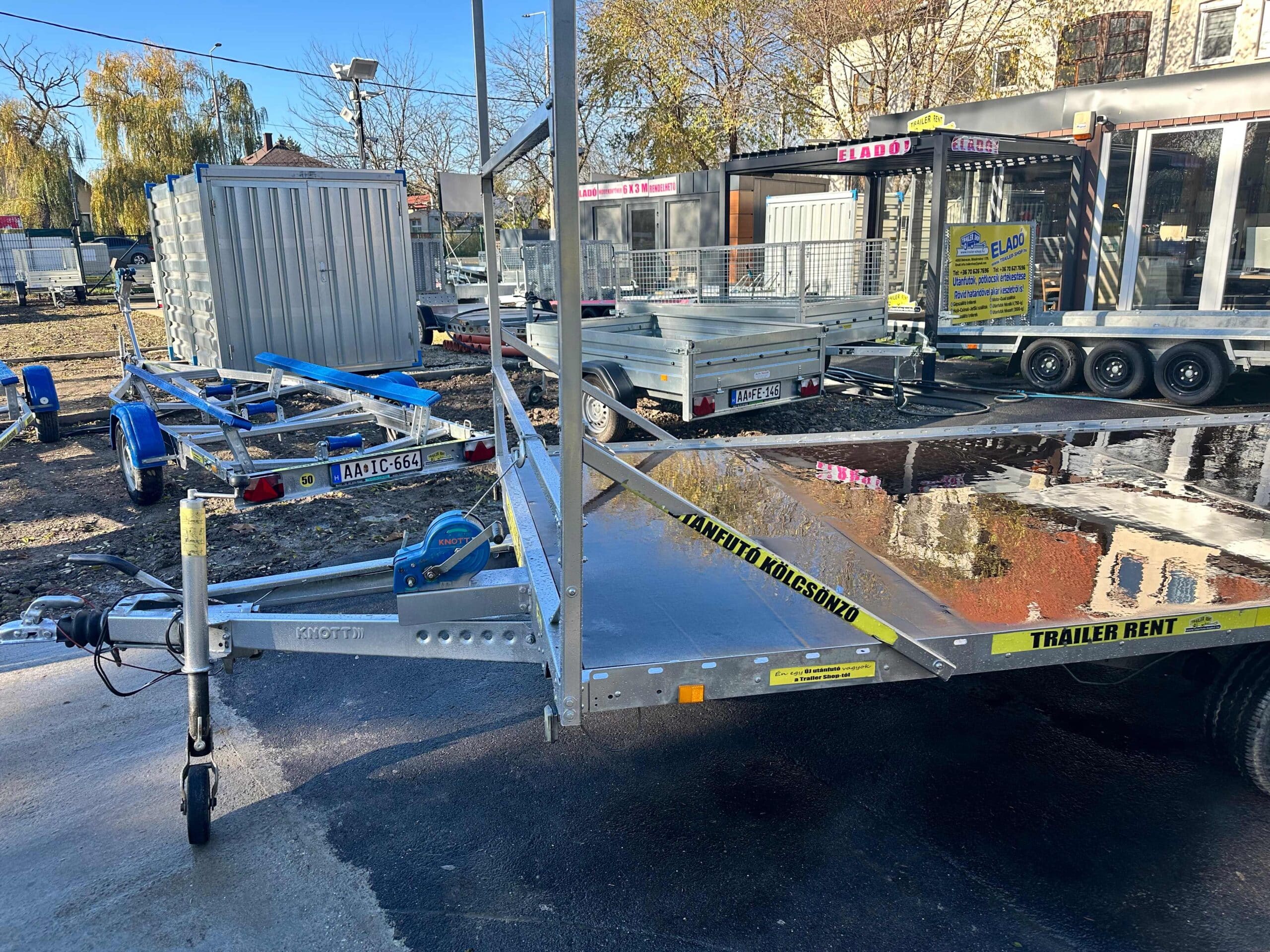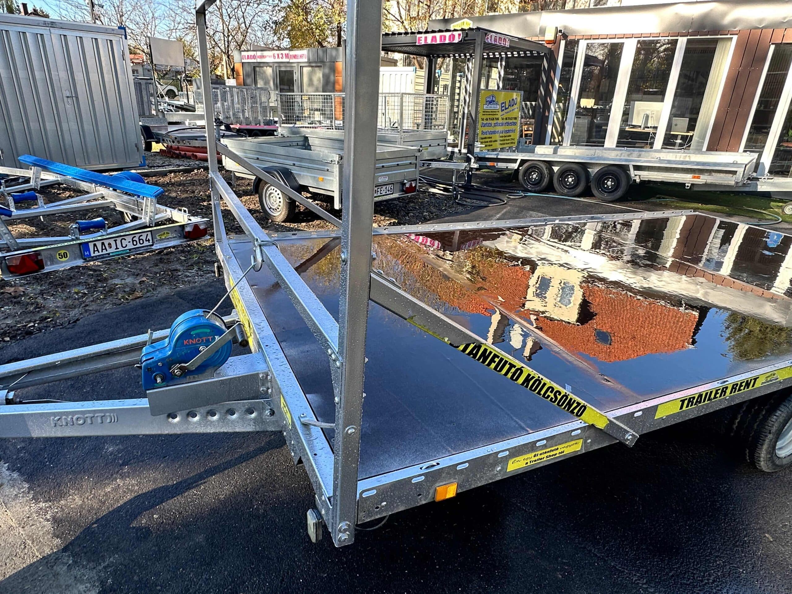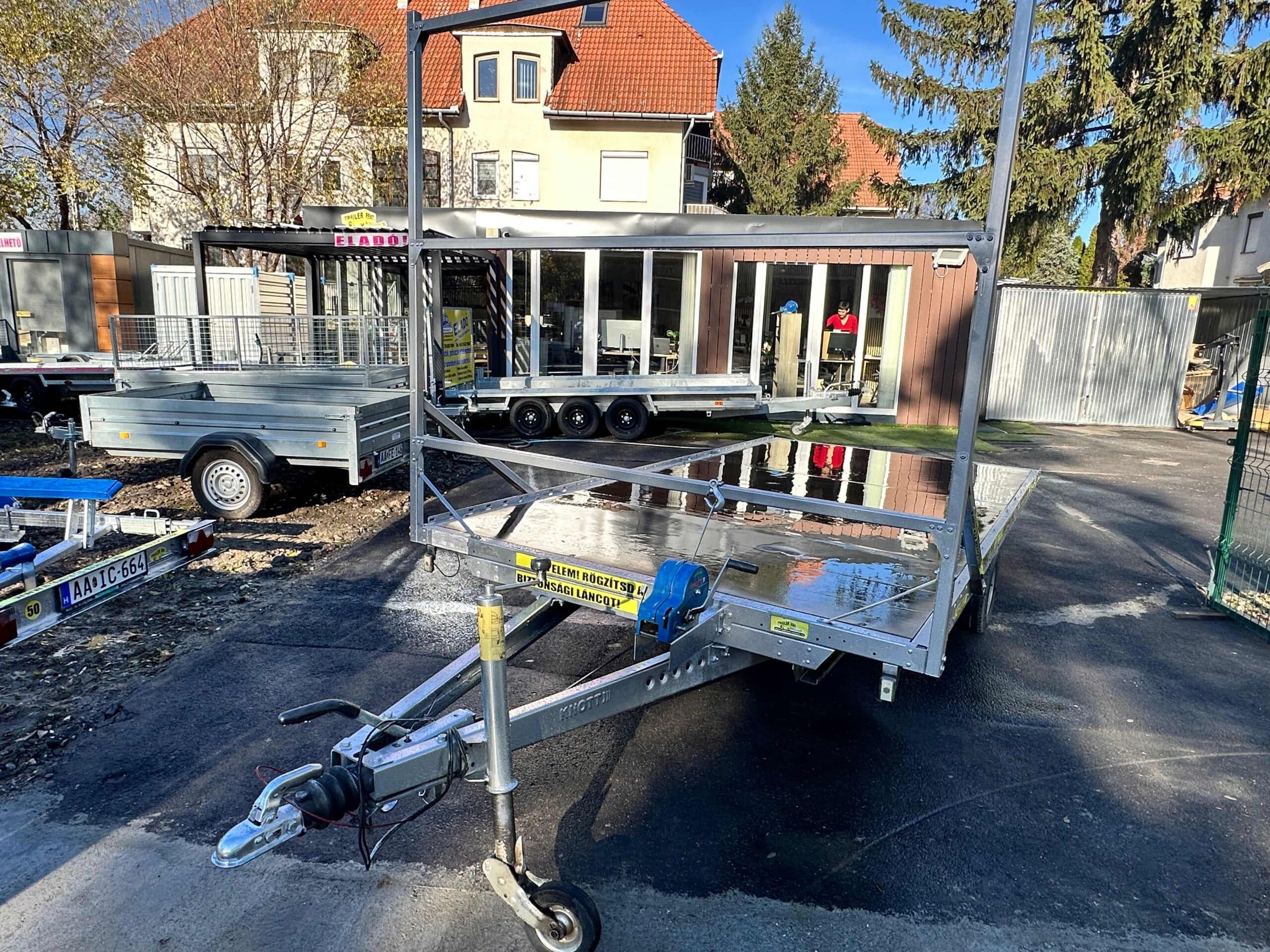 Az után futó alatt 1,3 tonnás tengely van, de 750kg ra van vizsgáztatva. Az utánfutóhoz tartozékként szerelt létraváz, rámpa (1 tonna/pár teherbírás), rámpatartó kialakítás, csörlő+csörlőtartó és a támasztókerék is az ár részét képezik. 2023-es gyártású utánfutó. Műszaki érvényesség: 2027.01.19.