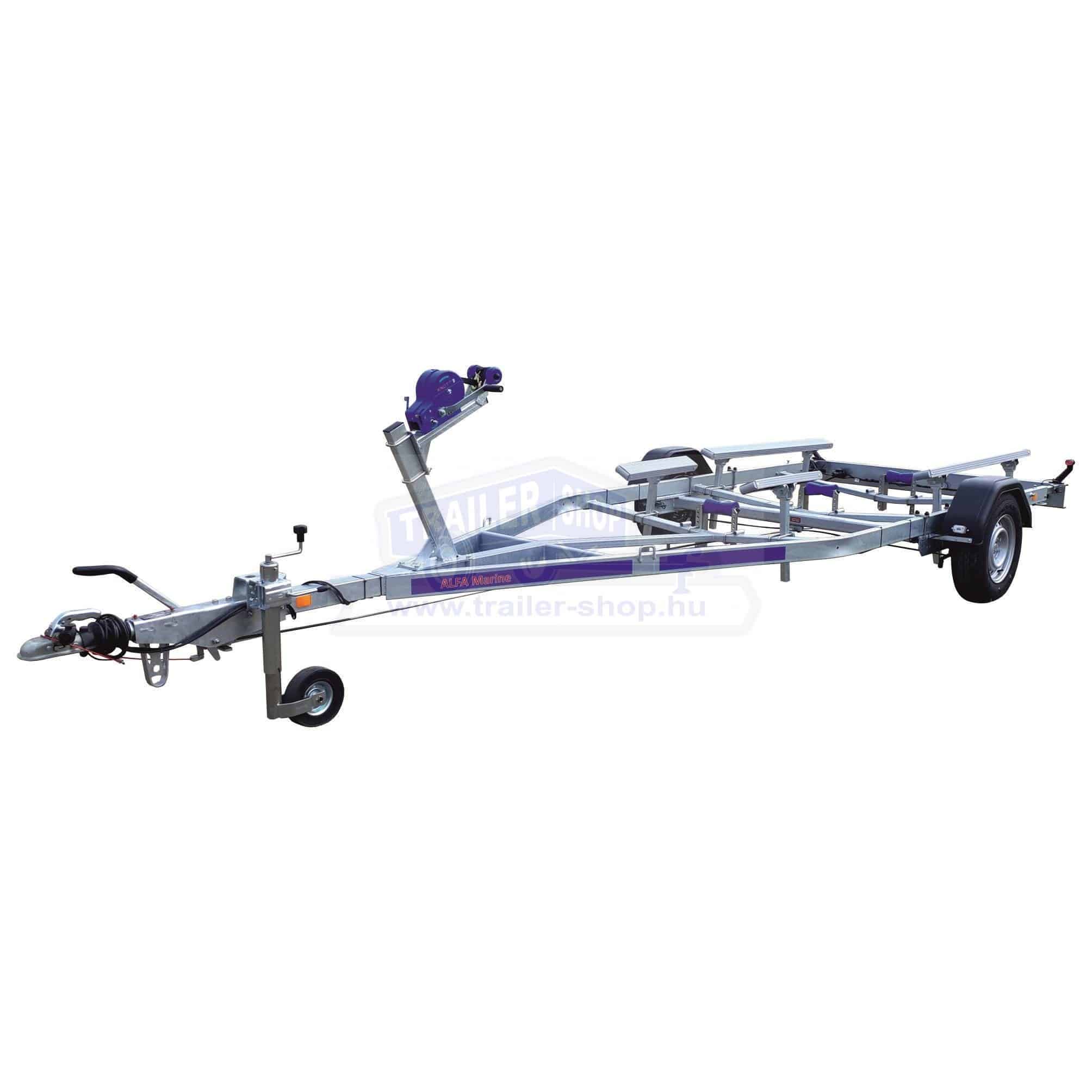 ALFA-B Marine 26420HP.150A Egytengelyes, 1,98×6,42(7,42)m, 1500kg, fékezett, párnafás, csónakszállító, hajószállító, max. 6,4m hajóig