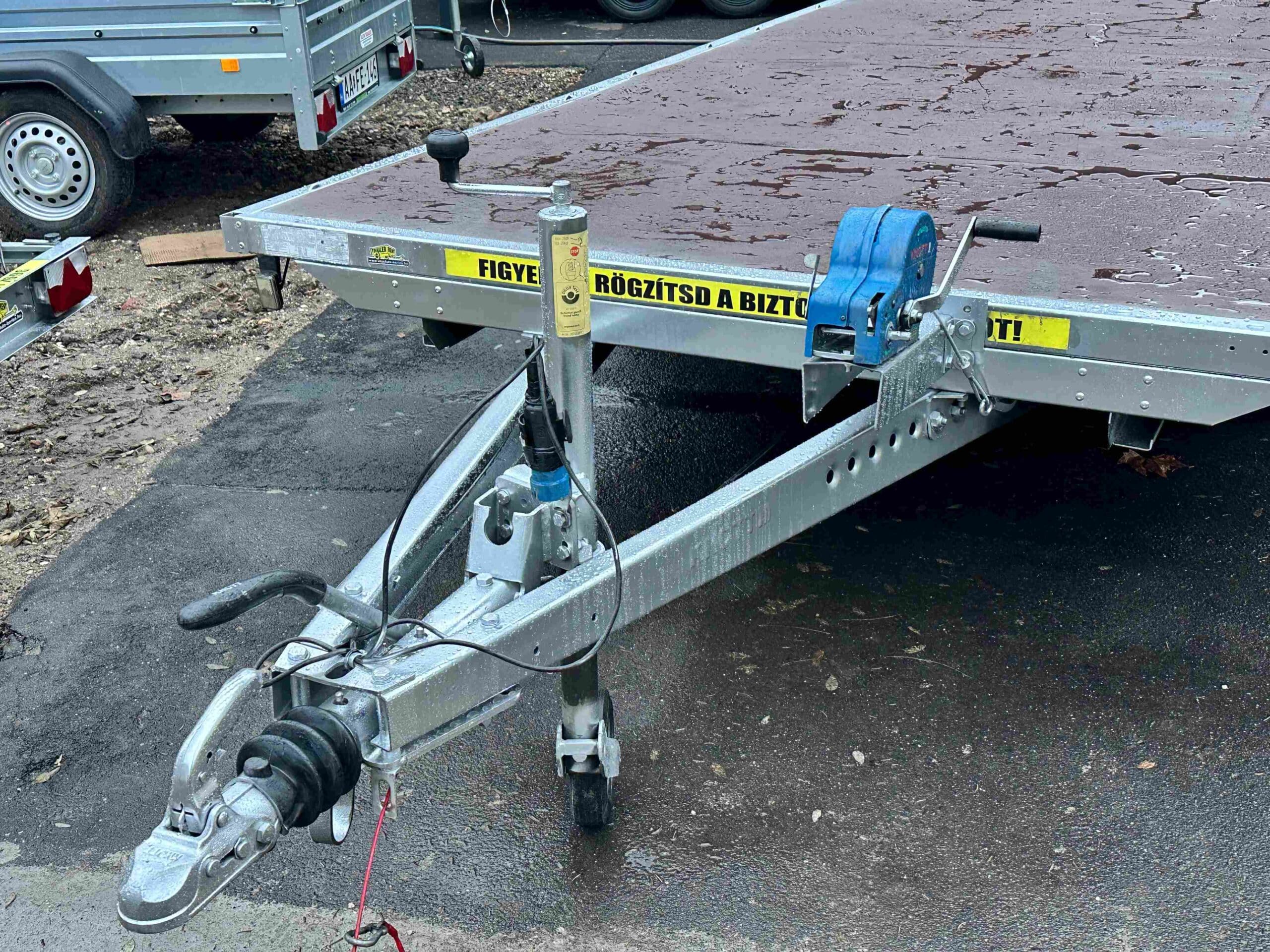 Az utánfutóhoz tartozékként szerelt rámpa (2 tonna/pár teherbírás), rámpatartó kialakítás, csörlő+csörlőtartó és a támasztókerék is az ár részét képezik.