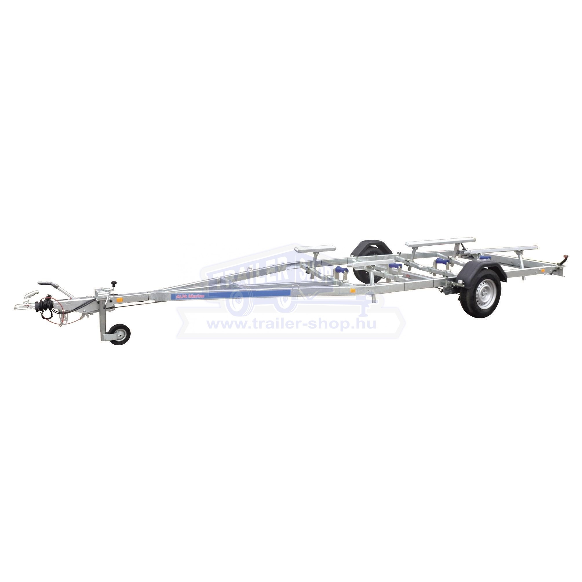 ALFA-T Marine 46325HG.200A* Kéttengelyes, 2,45×6,34(7,34)m, 2000kg, fékezett, görgős, csónakszállító, hajószállító, max. 6,3m hajóig