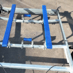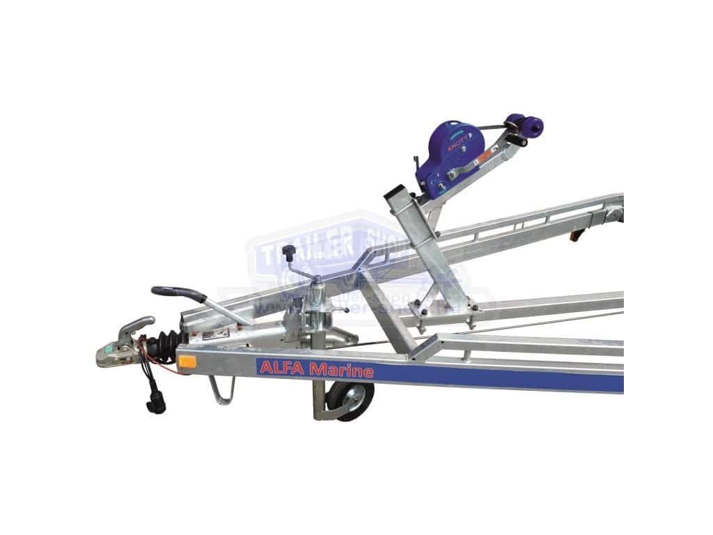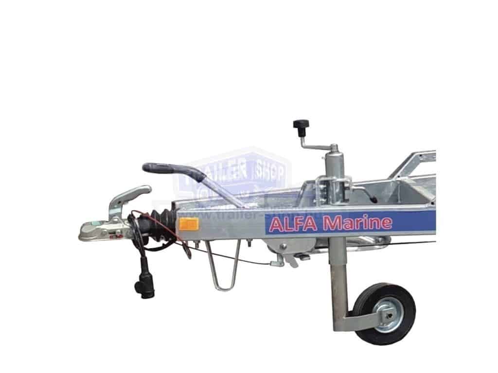 Az ALFA Marine csónakszállító alvázát megbízható, Knott gyártmányú torziós tengely alkotja. A 155/70 R13 méretű kerekek megfelelő stabilitást és terhelhetőséget biztosítanak a vízi járművek szállításához. A csónak alátámasztását párnafák vagy görgők biztosítják, amelyek stabil és biztonságos elhelyezést nyújtanak szállítás közben. A V-típusú vonórúd kiváló vontatási stabilitást garantál menet közben. A váz és tartóelemek teljes egészében horganyzott acélból készülnek, bordázott kialakításuk révén merev szerkezetet alkotnak, amely ellenáll a deformálódásnak. A hátsó rész kihúzható, így a csónak fel- és lehelyezése gyorsan és egyszerűen elvégezhető. Az ALFA Marine csónakszállító ideális választás minden olyan felhasználó számára, aki megbízható és tartós megoldást keres vízi járműve szállításához.