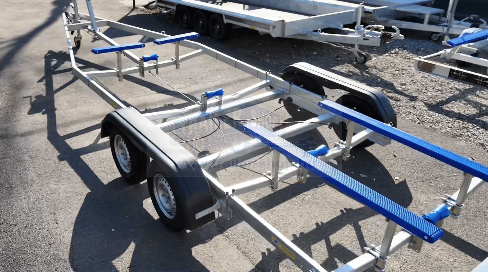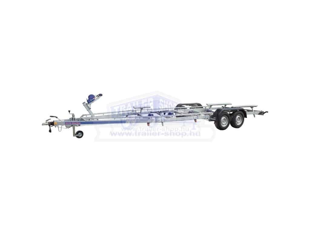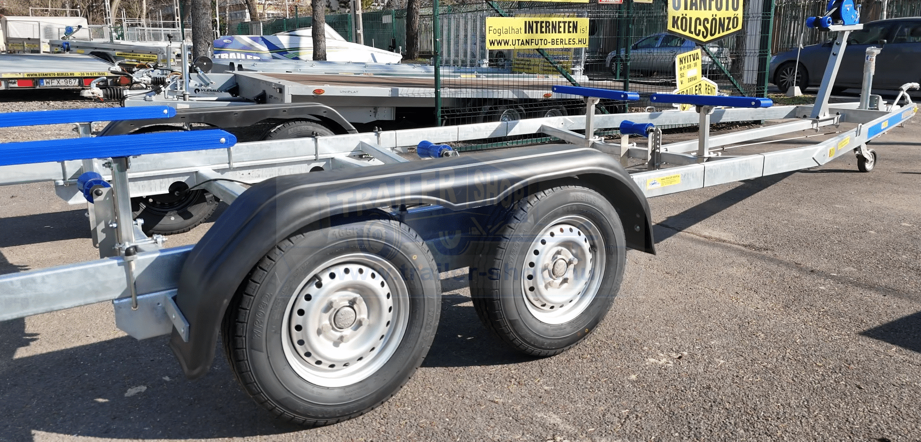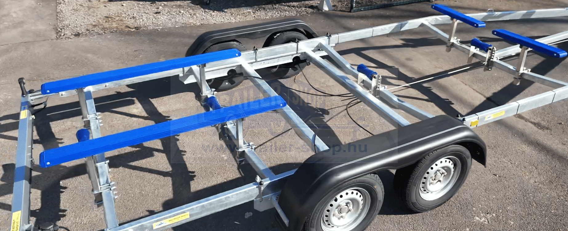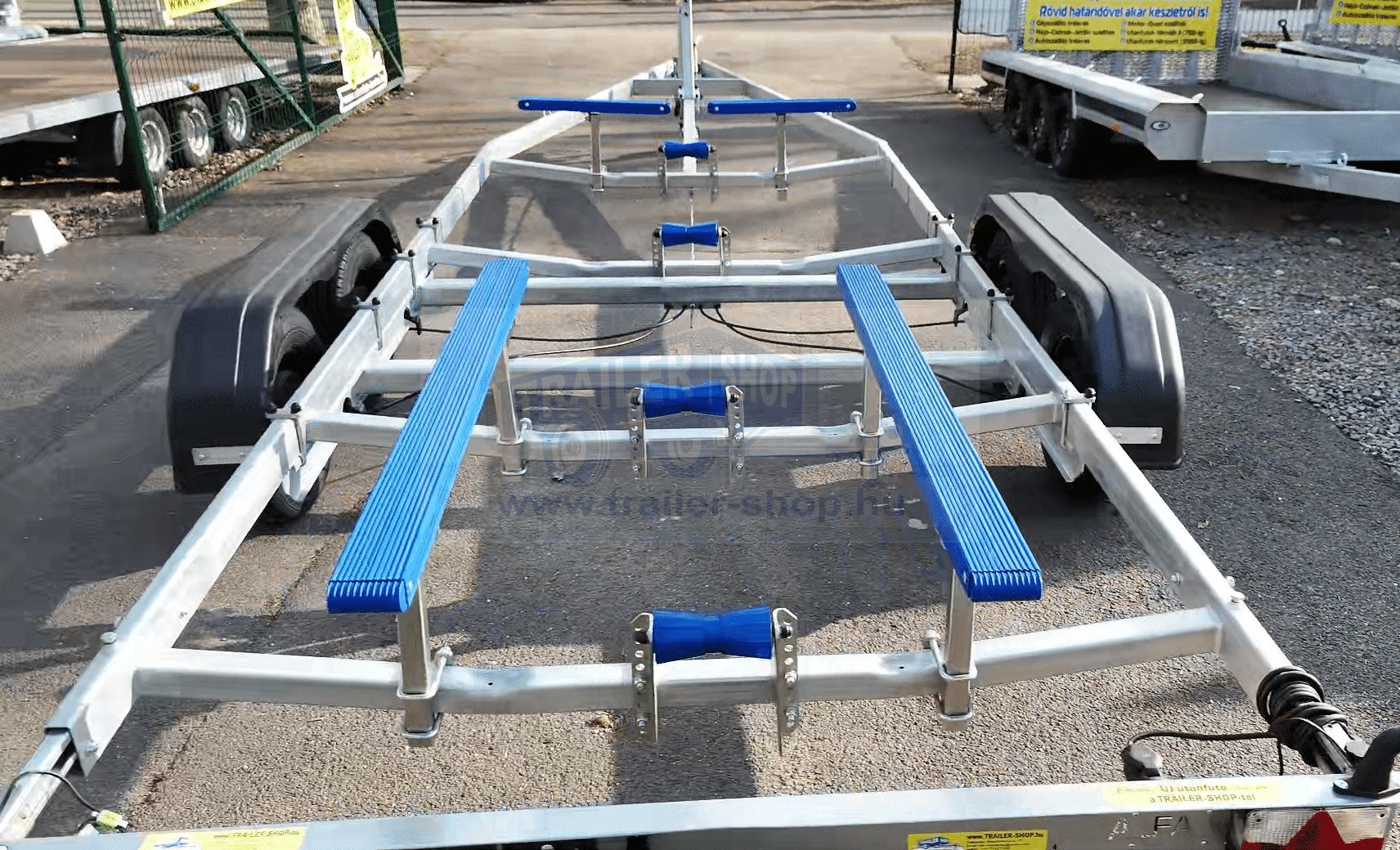 Az Alfa Marine csónakszállító utánfutó tűzihorganyzott acélszerkezete maximális védelmet biztosít a korrózióval és az időjárás viszontagságaival szemben. A csónak alátámasztását párnafák vagy görgők biztosítják, amelyek stabil és kíméletes megtámasztást nyújtanak a hajótest számára. Az erős alváz és a precízen kialakított tartóelemek kiemelkedő stabilitást garantálnak még teljes terhelés mellett is. A hátsó rész kihúzható, így a hosszabb csónaktestek is könnyedén felhelyezhetők és biztonságosan rögzíthetők. A nyitott kialakítás lehetővé teszi különféle méretű és formájú vízi járművek szállítását. A szerkezet kialakítása praktikus, könnyű kezelhetőséget és egyszerű használatot tesz lehetővé minden körülmény között. A kiváló anyaghasználat biztosítja a hosszú távú, megbízható működést. Az utánfutó jól viseli az úthibák okozta rázkódásokat és a rendszeres használatból eredő fizikai terhelést. A „További információk” szekcióban részletes adatokat talál a hajó és csónakszállító méreteiről, felszereltségéről és opcionális kiegészítőiről.