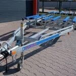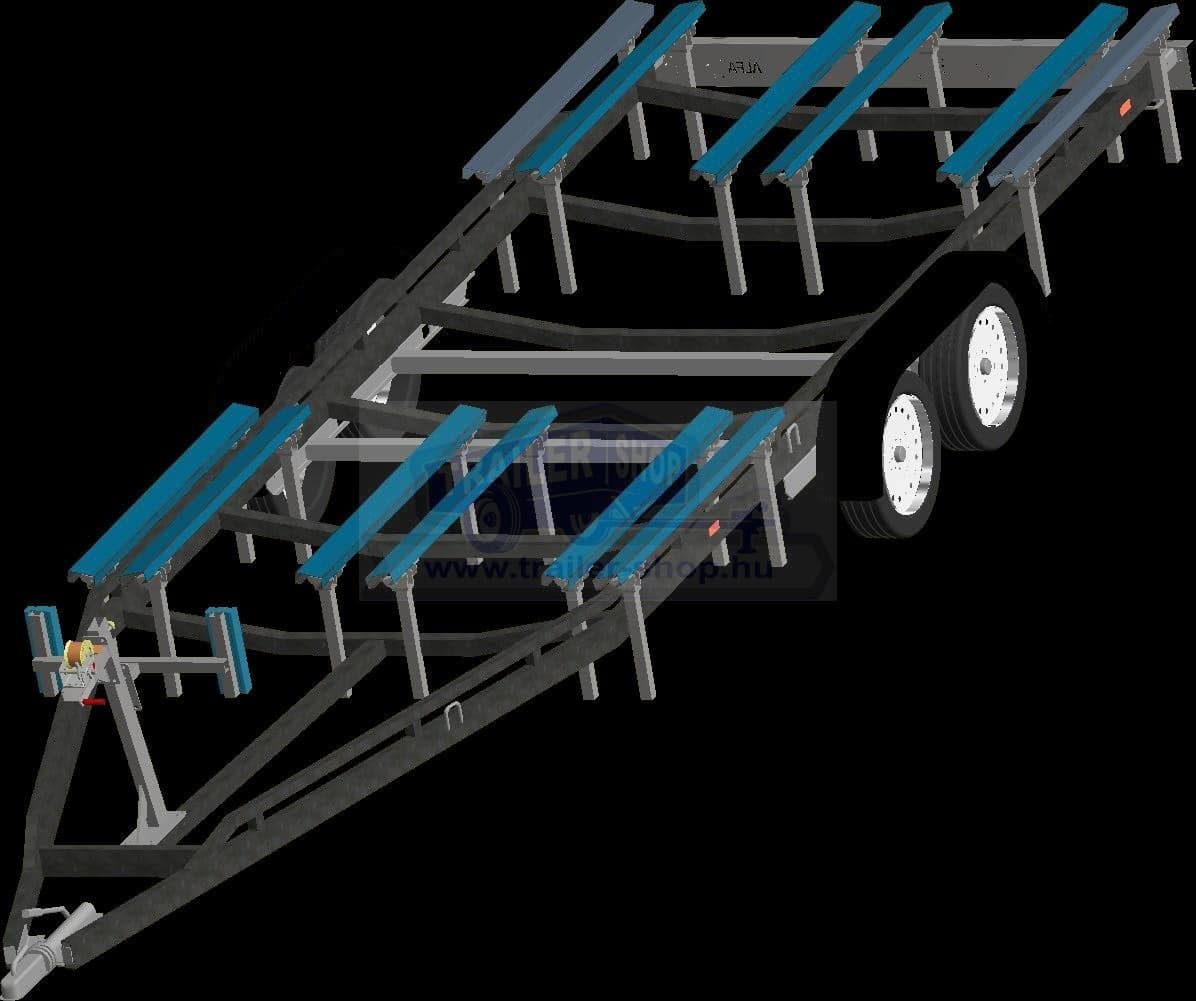 Az Alfa Marine csónakszállító utánfutó tűzihorganyzott acélszerkezete maximális védelmet biztosít a korrózióval és az időjárás viszontagságaival szemben. A csónak alátámasztását párnafák vagy görgők biztosítják, amelyek stabil és kíméletes megtámasztást nyújtanak a hajótest számára. Az erős alváz és a precízen kialakított tartóelemek kiemelkedő stabilitást garantálnak még teljes terhelés mellett is. A hátsó rész kihúzható, így a hosszabb csónaktestek is könnyedén felhelyezhetők és biztonságosan rögzíthetők. A nyitott kialakítás lehetővé teszi különféle méretű és formájú vízi járművek szállítását. A szerkezet kialakítása praktikus, könnyű kezelhetőséget és egyszerű használatot tesz lehetővé minden körülmény között. A kiváló anyaghasználat biztosítja a hosszú távú, megbízható működést. Az utánfutó jól viseli az úthibák okozta rázkódásokat és a rendszeres használatból eredő fizikai terhelést. A „További információk” szekcióban részletes adatokat talál a hajó és csónakszállító méreteiről, felszereltségéről és opcionális kiegészítőiről.