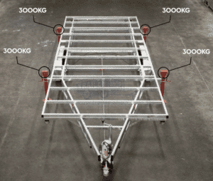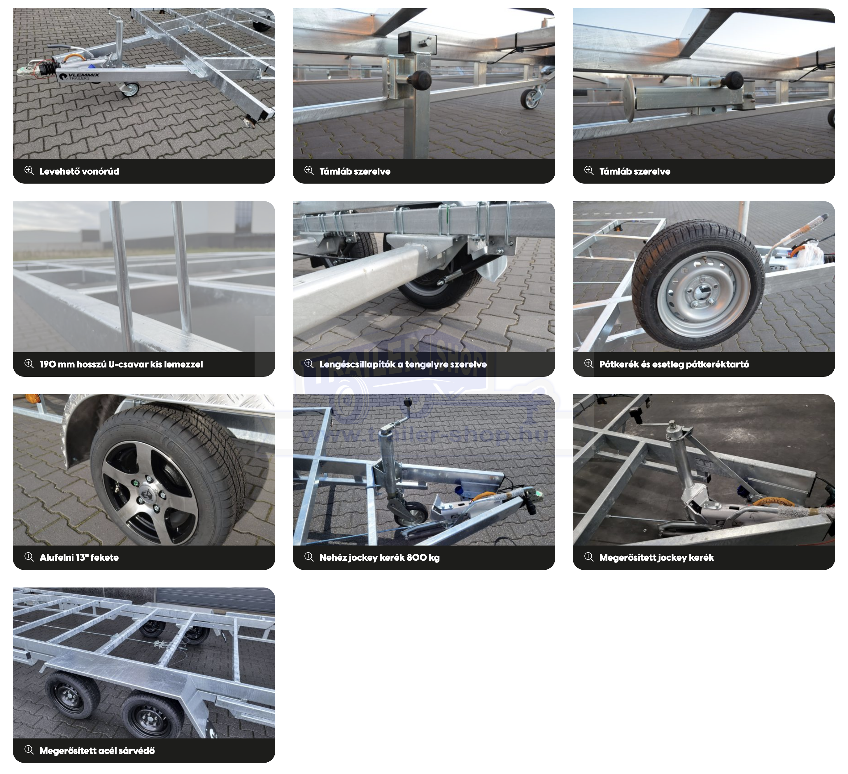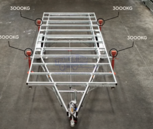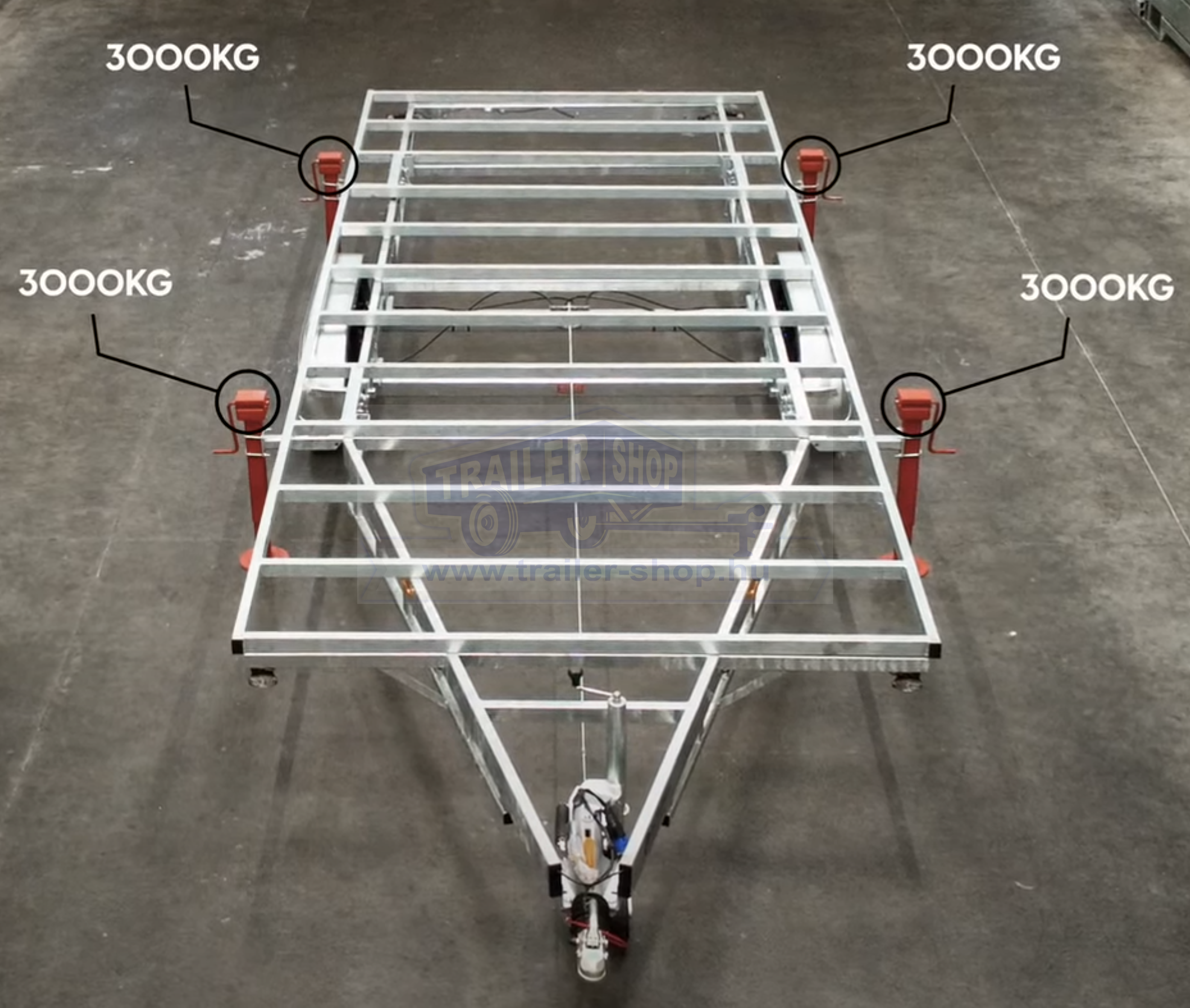 - Opcionálisan támasztóláb szett levehető vázhoz (4x3000kg) – T0060 – cikkszámú termékkel szerelve a felár nettó 224.900 Ft