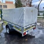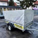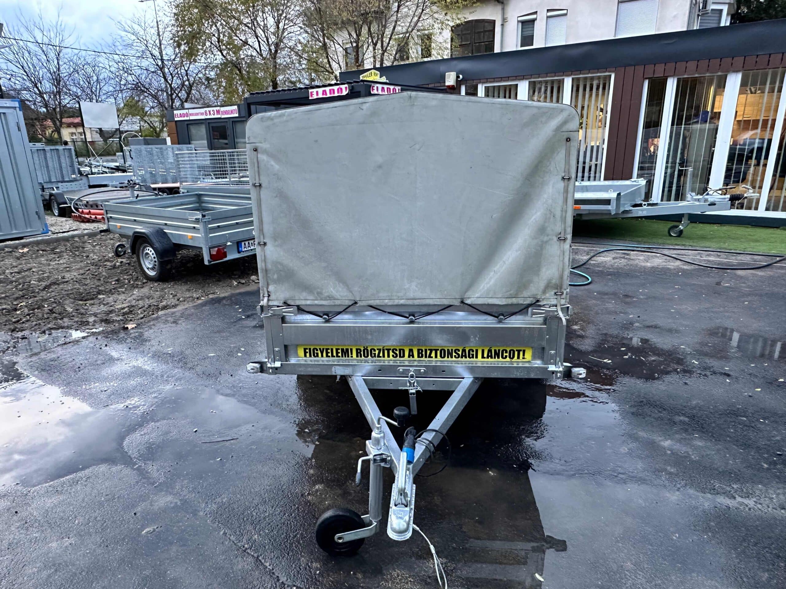 Horganyzott acéllemez alvázelemek és oldalfalak, rétegelt lemez fa padozat. 13 colos kerekek, 7 pólusú elektromos csatlakozó, 4db rakományrögzítő fül. Az utánfutóhoz tartozékként szerelt ponyvaváz, ponyva és támasztókerék is az ár részét képezik. 2021-es gyártású utánfutó. Műszaki érvényesség: 2027.11.08.