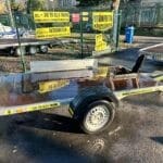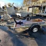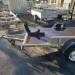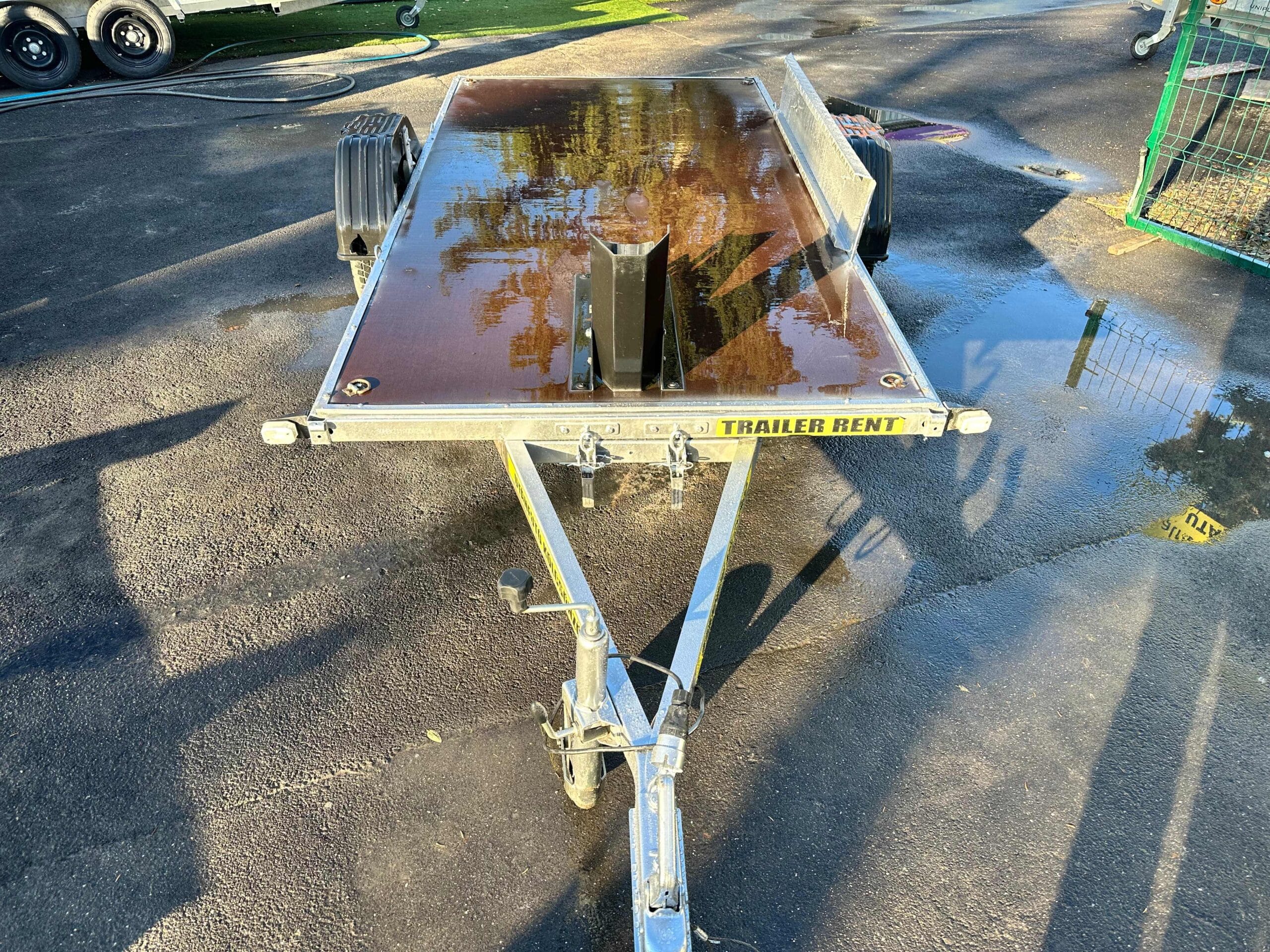 Zaslaw 265SU 2,65×1,32m méretű, 750kg fékezetlen mellsőkerekes sík platós nyitott motorszállító utánfutó, használt utánfutó