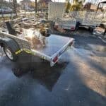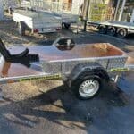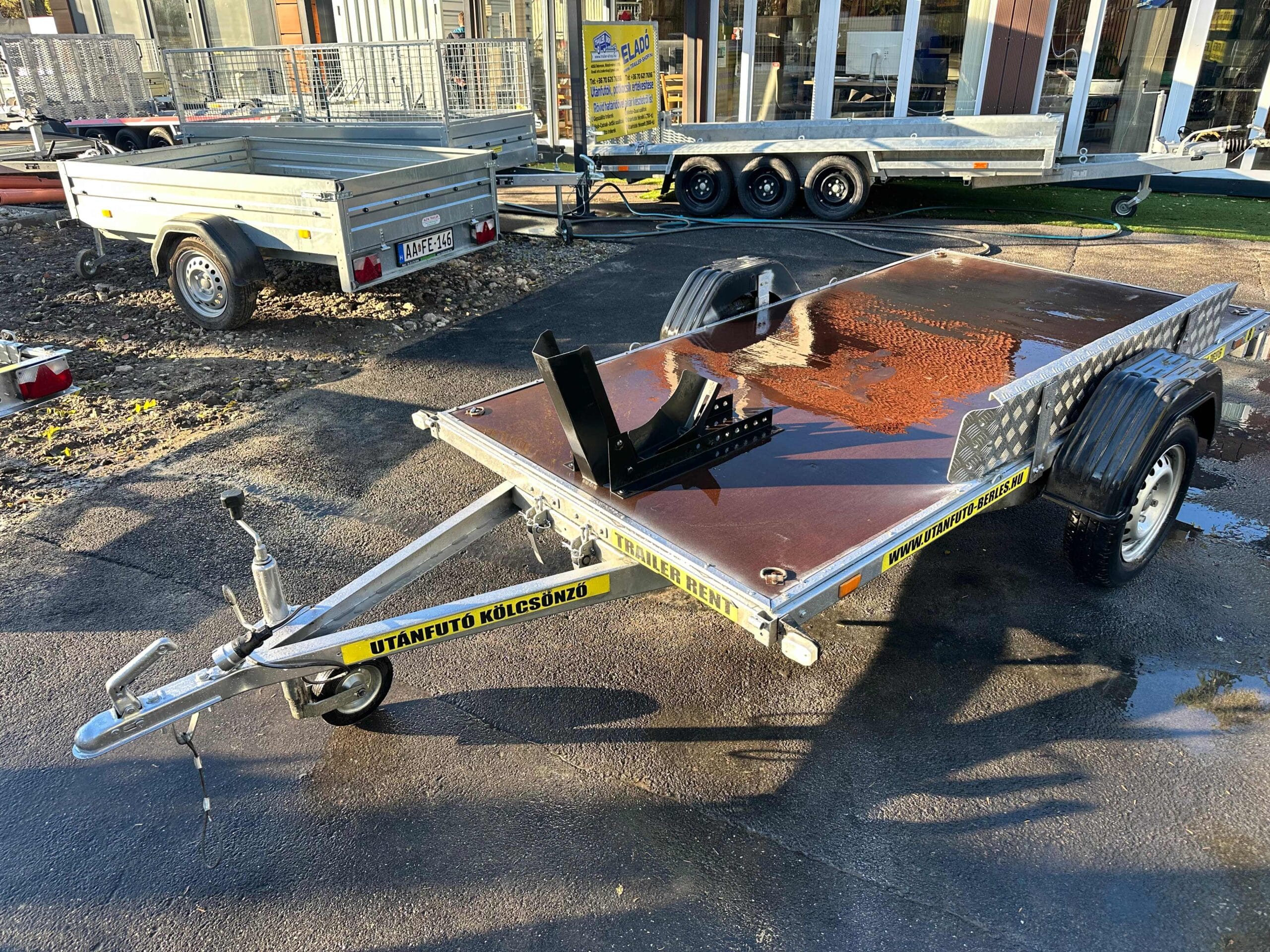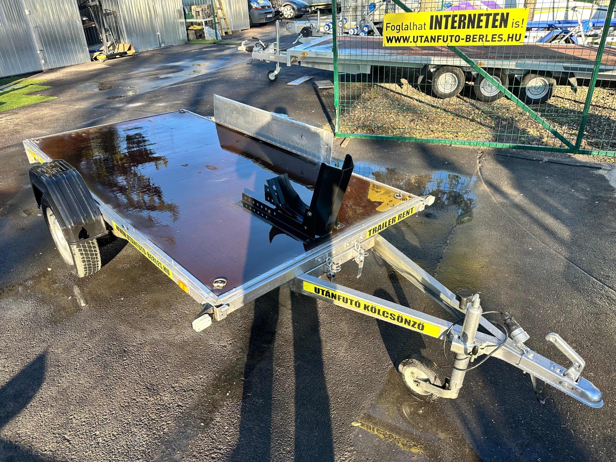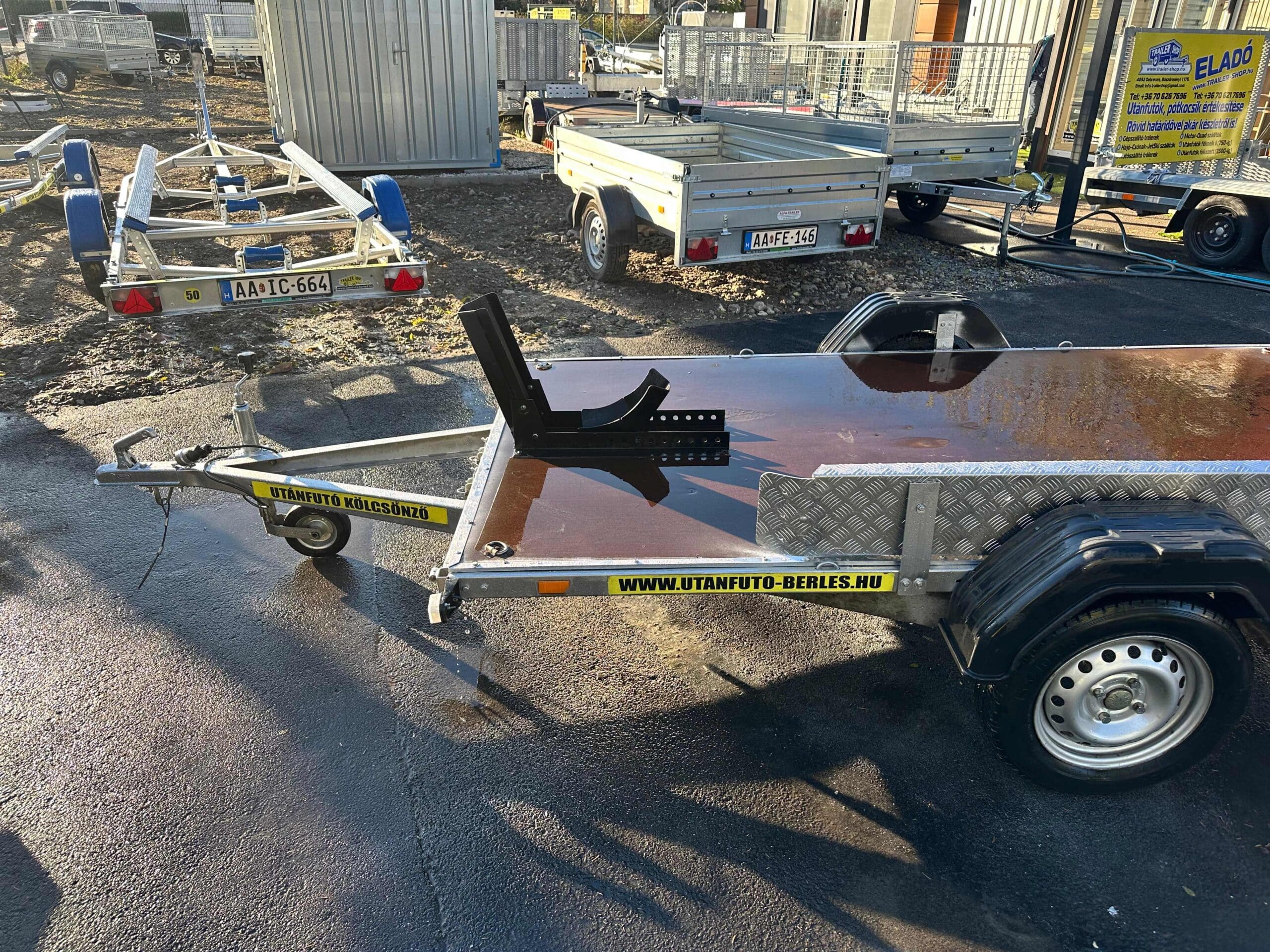 Horganyzott acéllemez alvázelemek és oldalfalak, rétegelt lemez fa padozat. 13 colos kerekek, 7 pólusú elektromos csatlakozó, 4db rakományrögzítő fül. Az utánfutóhoz tartozékként szerelt rámpa, motorbefogó és támasztókerék is az ár részét képezik. 2021-es gyártású utánfutó. Műszaki érvényesség: 2027.10.18.